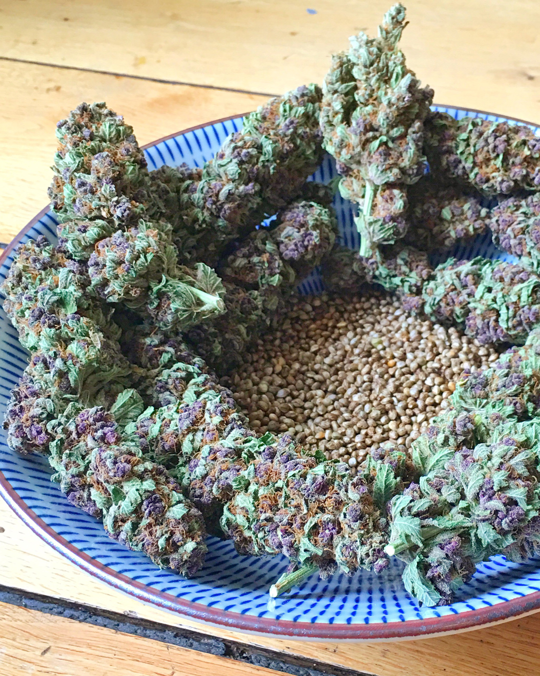 Lavender brings together a world of weed. Strains with histories that traverse Afghanistan, Hawaii, Korea, the U.S, and Europe are all melded together in this 3-way cross. An exotic looking strain, Lavender develops the darkest purple coloration you can imagine. The color is intense, with the leaves turning nearly to black at the ends, they are so deeply saturated with color.